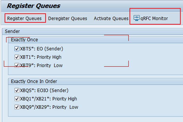qRFC Monitor > Queue name = X~~ 등등이 존재해야 정상적으로 등록된 것이다.